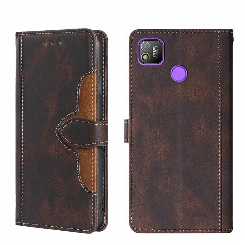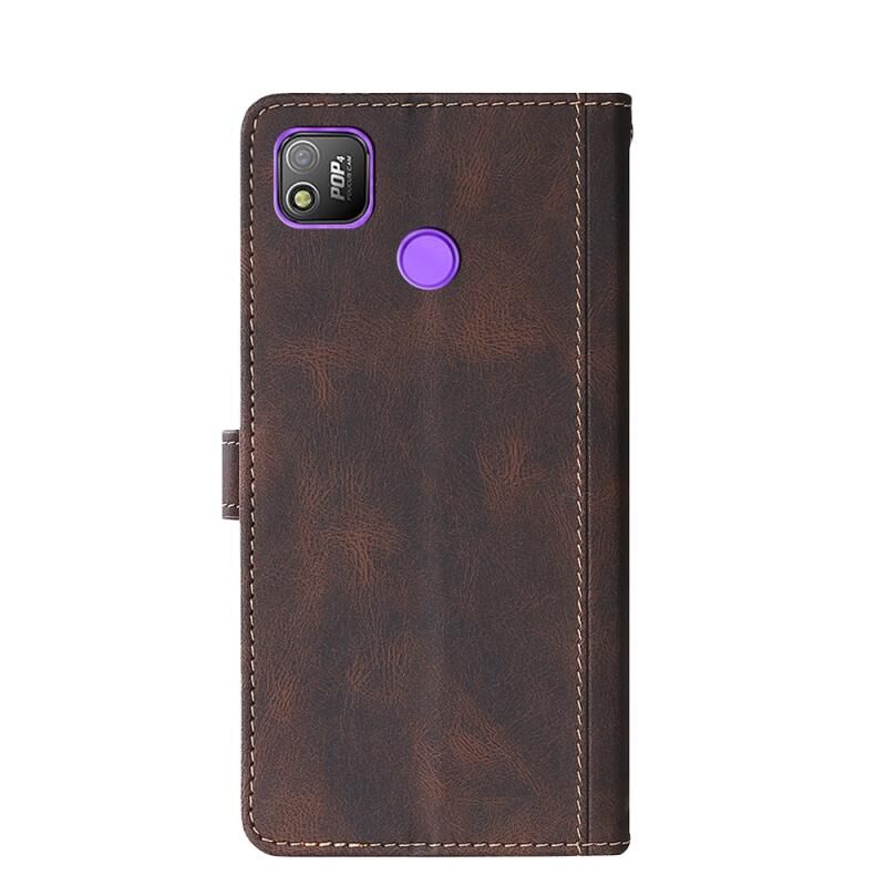 Για Tecno Pop 4 δέρμα αίσθηση άχυρο καπέλο μαγνητική πόρπη δερμάτινη θήκη τηλεφώνου (καφέ)