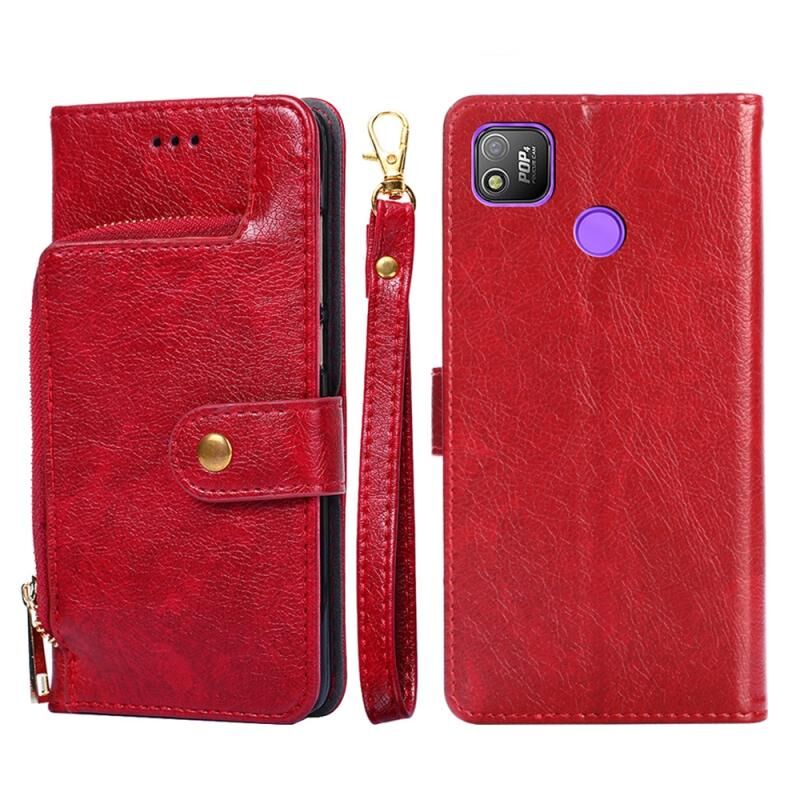 Για Tecno Pop 4 φερμουάρ τσάντα δερμάτινη θήκη τηλεφώνου (κόκκινο)