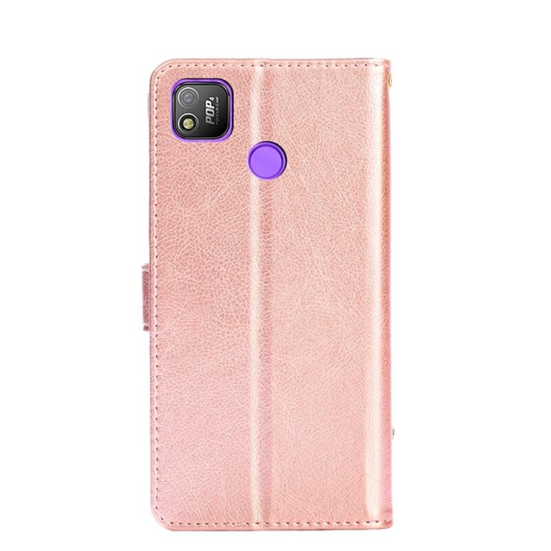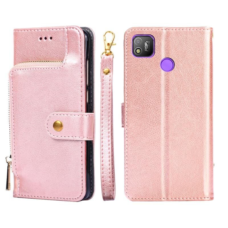 Για Tecno Pop 4 φερμουάρ τσάντα δερμάτινη θήκη τηλεφώνου (Rose Gold)