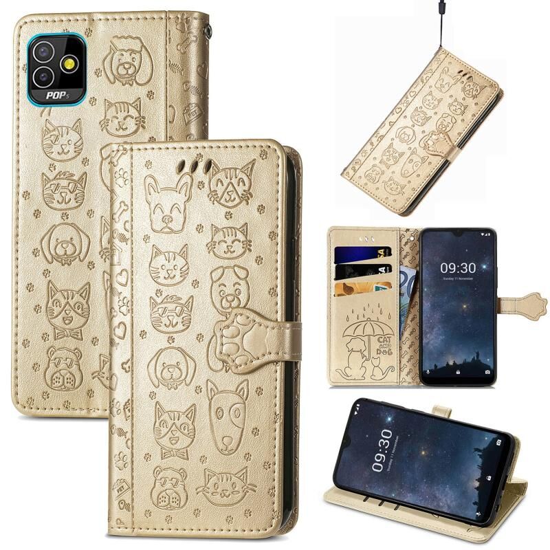 Θήκη τηλεφώνου Tecno Pop 5 για γάτα και σκύλο με ανάγλυφο δέρμα (Μπλε)