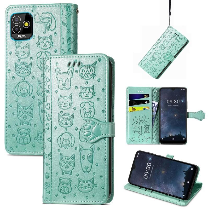 Θήκη τηλεφώνου Tecno Pop 5 για γάτα και σκύλο με ανάγλυφο δέρμα (Μπλε)