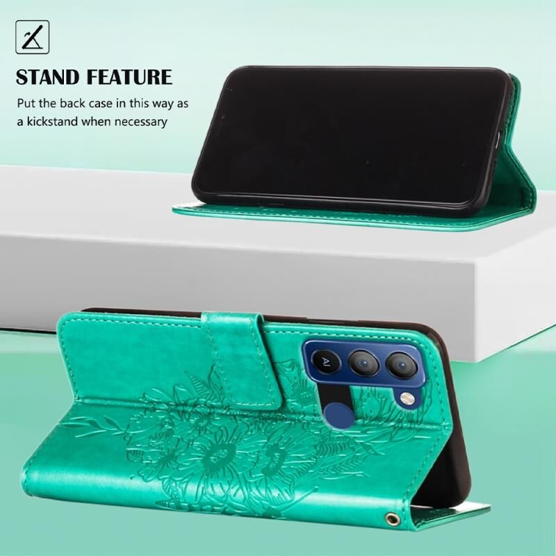 Θήκη τηλεφώνου Tecno Pop 5 LTE από δέρμα με ανάγλυφο σχέδιο πεταλούδας (Γκρι)