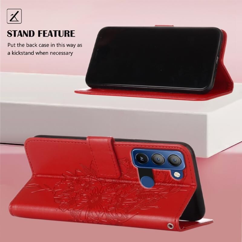 Θήκη τηλεφώνου Tecno Pop 5 LTE από δέρμα με ανάγλυφο σχέδιο πεταλούδας (Γκρι)