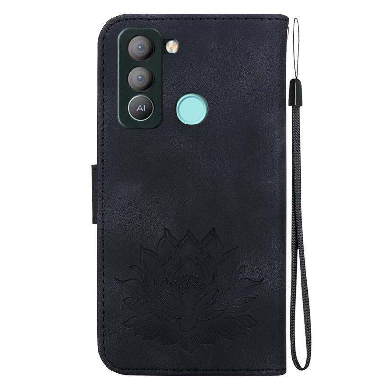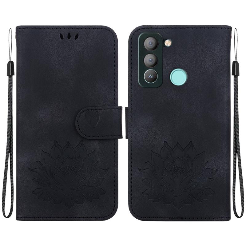 For Tecno Pop 5 LTE Lotus Embossed Leather Phone Case(Black)