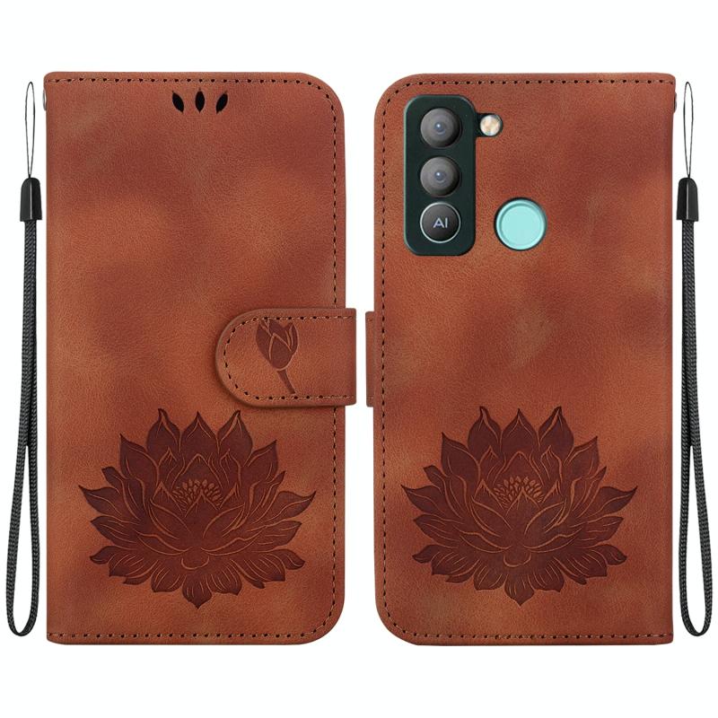 For Tecno Pop 5 LTE Lotus Embossed Leather Phone Case(Brown)