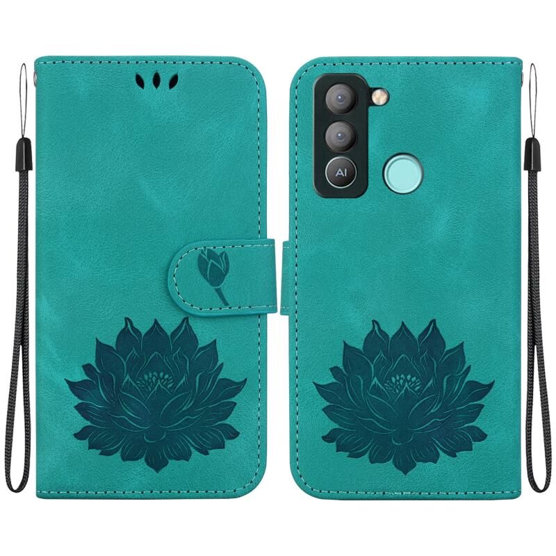 For Tecno Pop 5 LTE Lotus Embossed Leather Phone Case(Green)