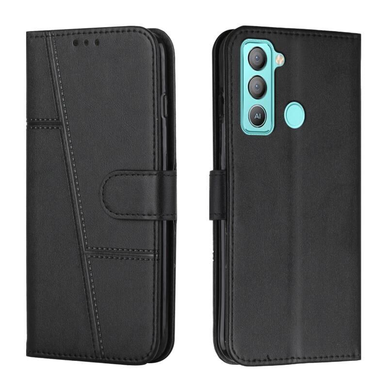 Για Tecno Pop 5 LTE ραφή μοσχάρι υφή πόρπη δέρμα τηλέφωνο υπόθεση (μαύρο)