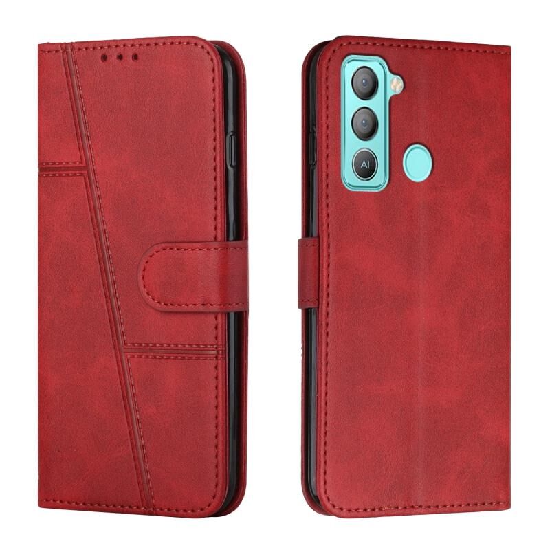 Για Tecno Pop 5 LTE ραφή μοσχάρι υφή πόρπη δέρμα τηλέφωνο υπόθεση (κόκκινο)