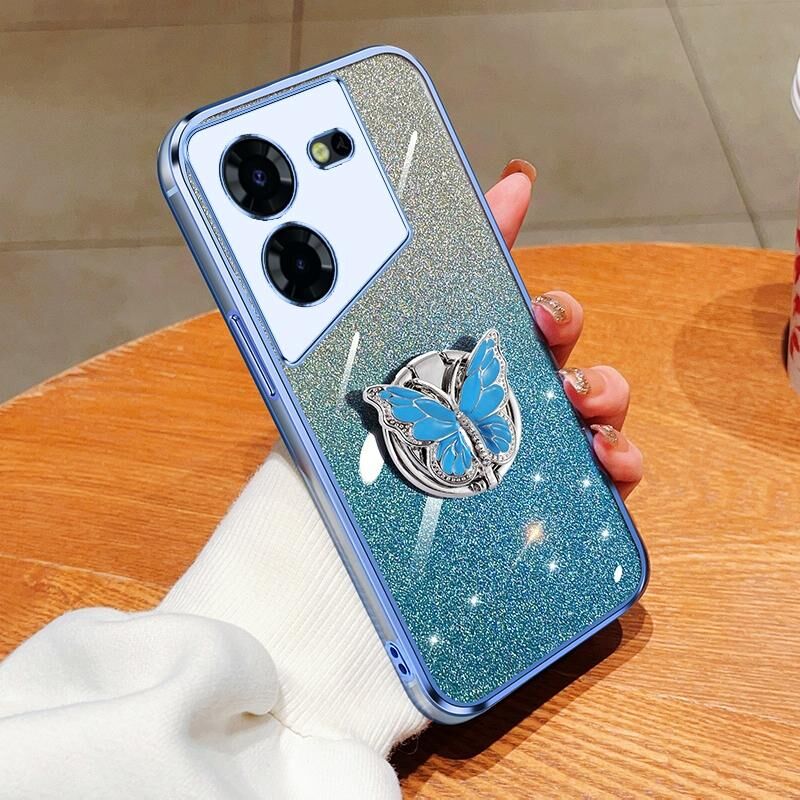 Για Tecno Pop 5 Pro Επιμεταλλωμένο διαβάθμιση Glitter πεταλούδα κάτοχος TPU τηλέφωνο υπόθεση (Sierra Blue)