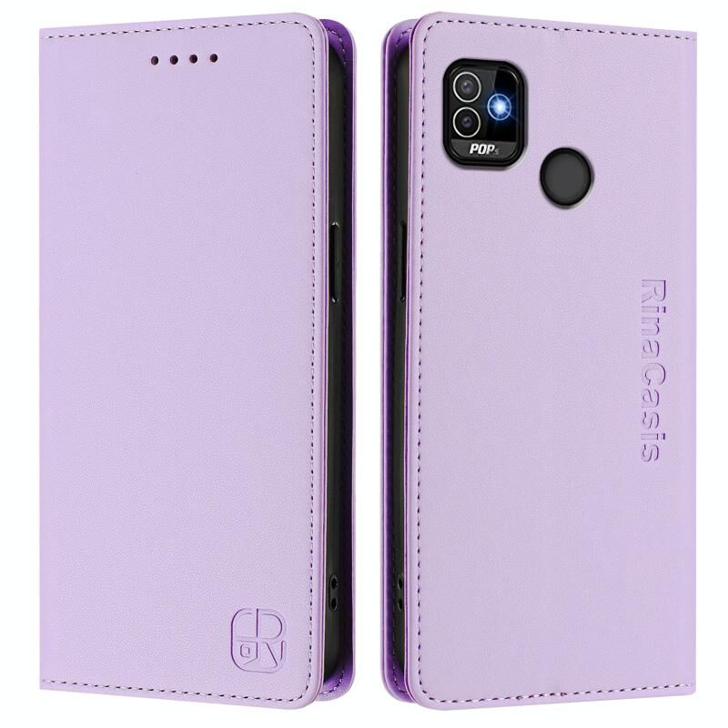 For Tecno Pop 5 RC01 Dual-Folded Magnetic Suction RFID Leather Phone Case(Light Purple)