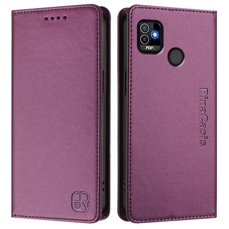 For Tecno Pop 5 RC01 Dual-Folded Magnetic Suction RFID Leather Phone Case(Violet)