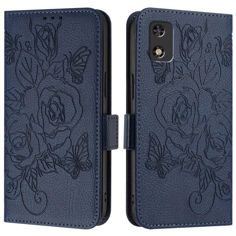 For Tecno Pop 5c / itel A23 Pro / A17 Embossed Rose RFID Anti-theft Leather Phone Case(Dark Blue)