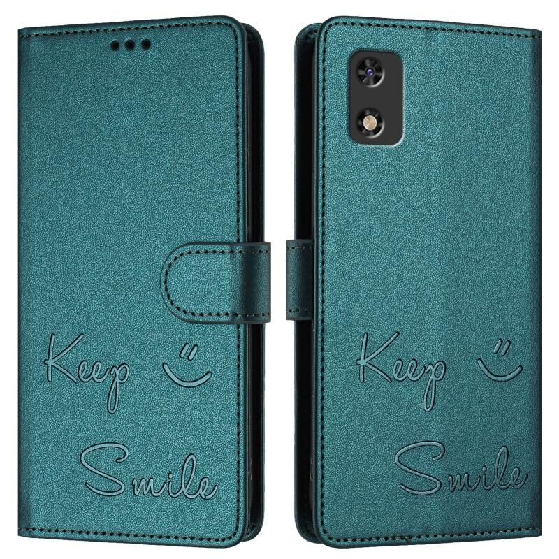 For Tecno Pop 5c Smile Embossing RFID Leather Phone Case(Peacock Green)