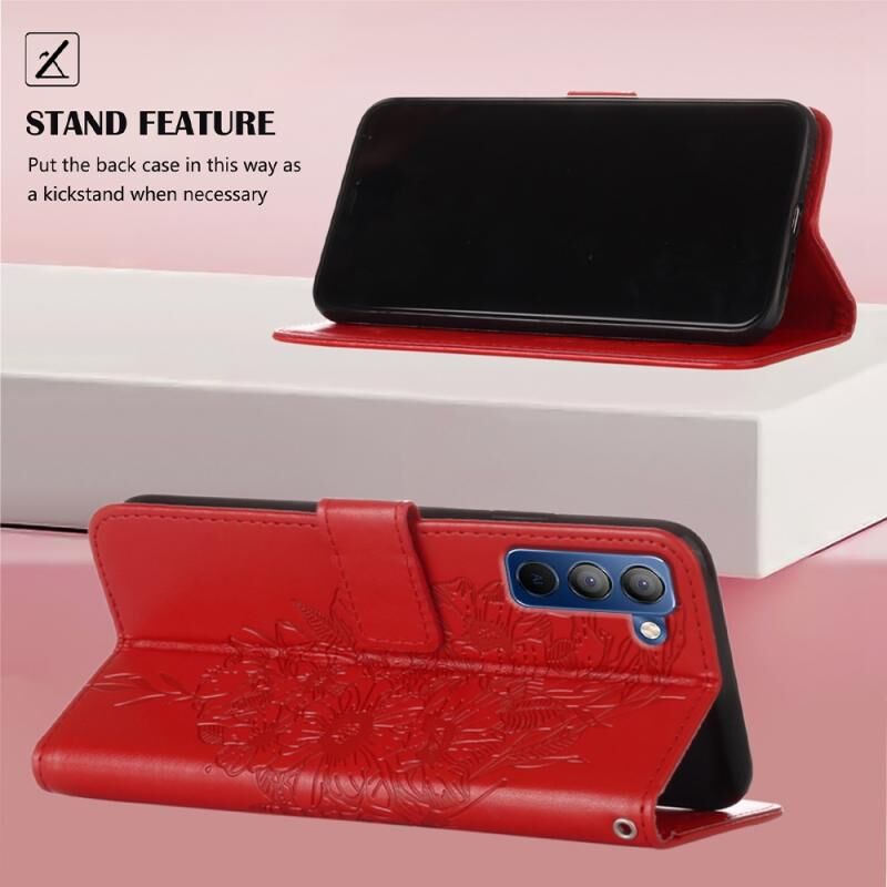 Θήκη τηλεφώνου Tecno Pop 5P με ανάγλυφο σχέδιο πεταλούδας από δέρμα (Γκρι)