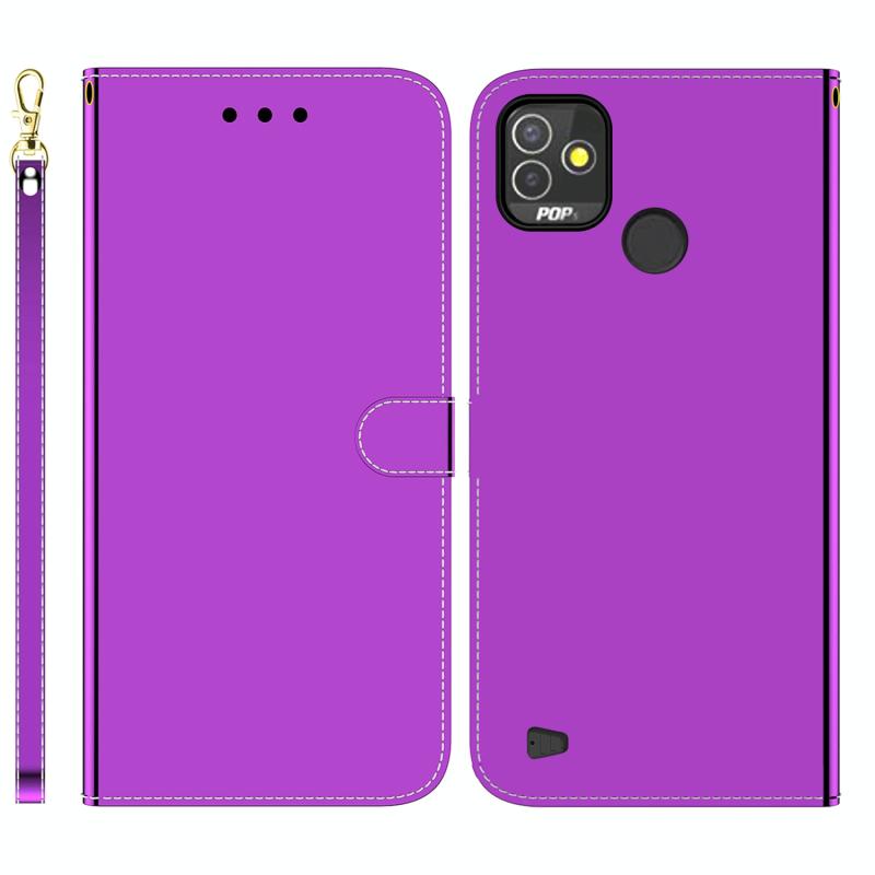 Θήκη τηλεφώνου Tecno Pop 5P από δερματίνη με οριζόντιο άνοιγμα και επιφάνεια που μιμείται καθρέφτη (Μωβ)