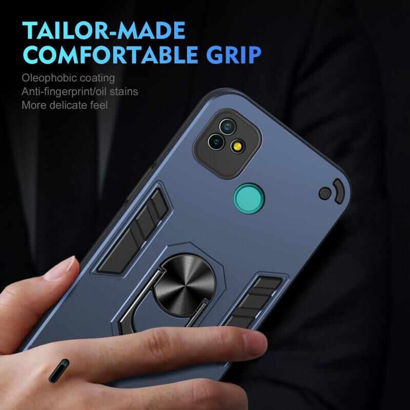 For Tecno Pop 5P Shockproof Metal Ring Holder Phone Case(Blue)