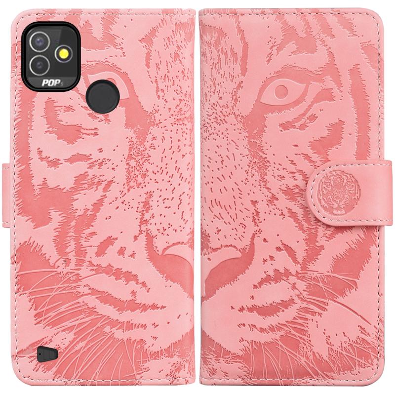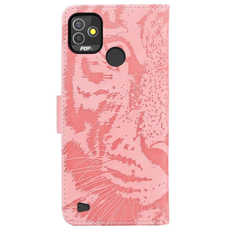 Θήκη τηλεφώνου Tecno Pop 5P Tiger Embossing Pattern Οριζόντια Δερμάτινη με Φλις (ρόζ)