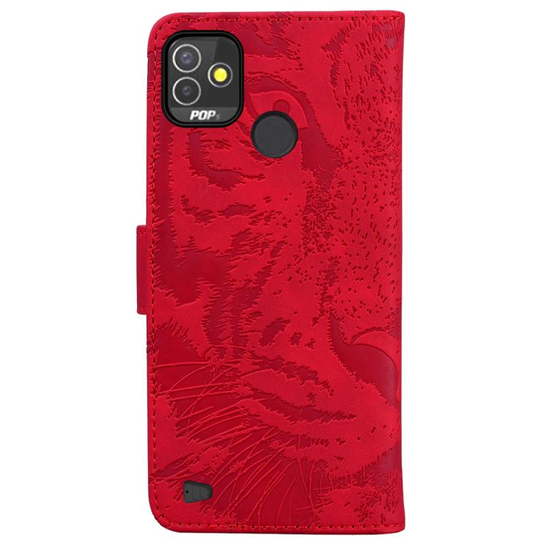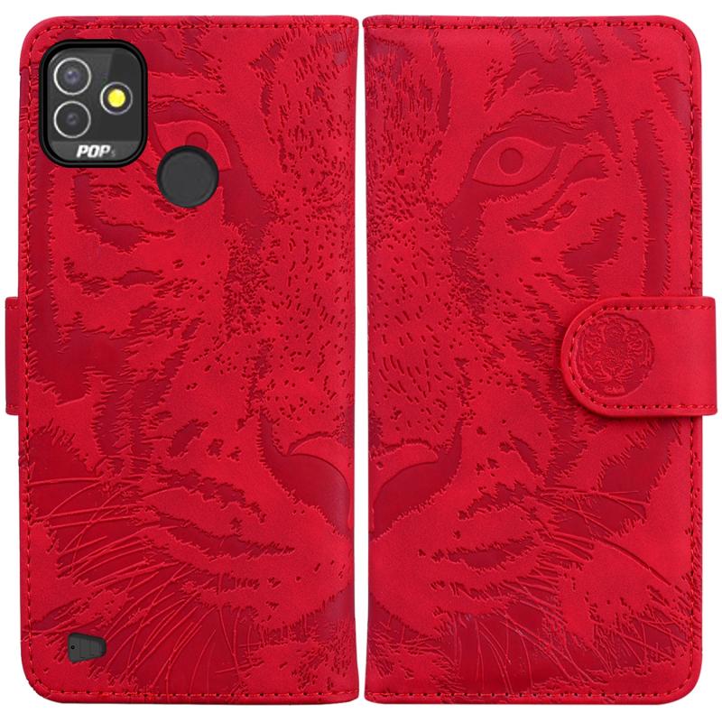 Θήκη τηλεφώνου Tecno Pop 5P Tiger Embossing Pattern Οριζόντια Δερμάτινη με Φλις (Ροζ)