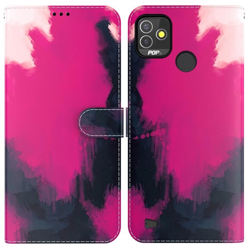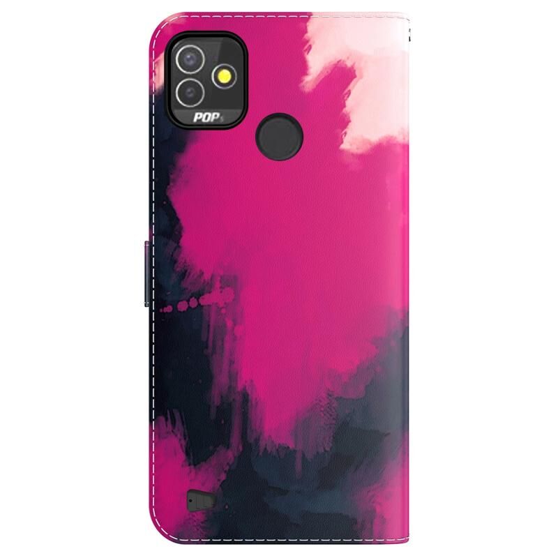 Θήκη τηλεφώνου Tecno Pop 5P, δερμάτινη, οριζόντια αναδίπλωση, με σχέδιο ακουαρέλας (Χρώμα Μούρο)