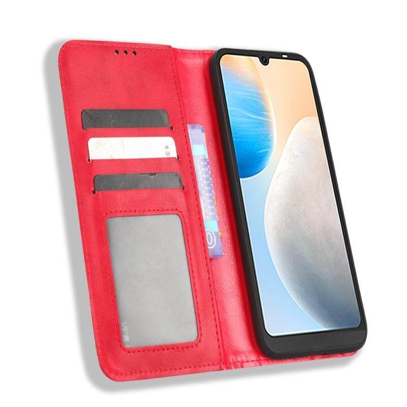 Για Tecno Pop 6 BE7 Μαγνητική πόρπη ρετρό υφή δερμάτινη θήκη τηλεφώνου (Κόκκινο)