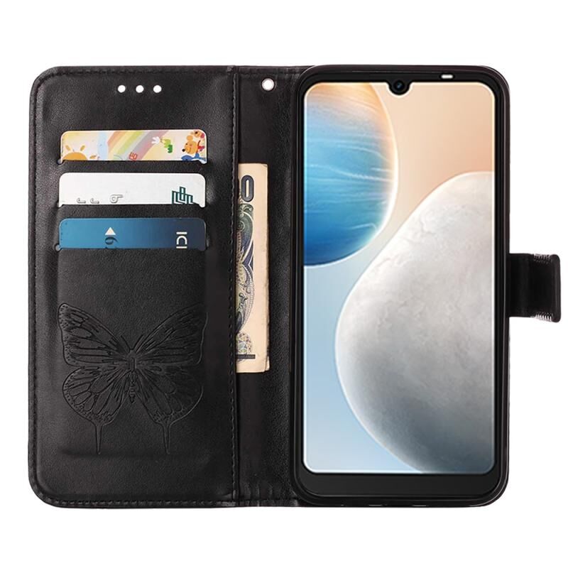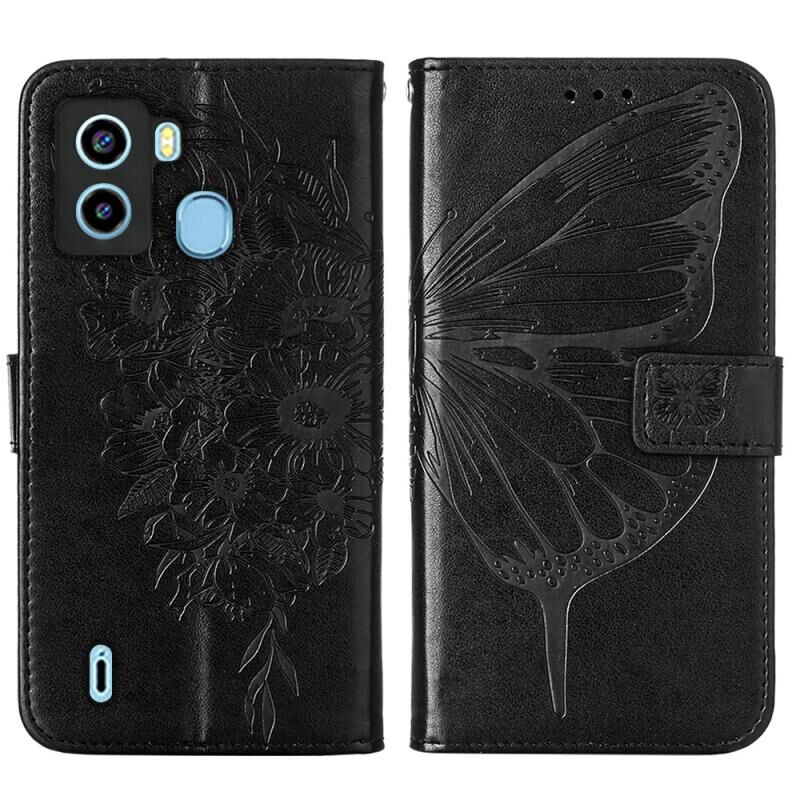 Θήκη τηλεφώνου Tecno POP 6 με ανάγλυφο σχέδιο πεταλούδας, δερμάτινη, τύπου flip (Μπλε)