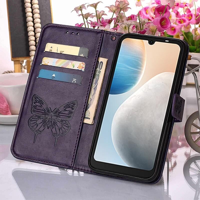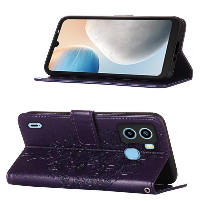Θήκη τηλεφώνου Tecno POP 6 με ανάγλυφο σχέδιο πεταλούδας, δερμάτινη, τύπου flip (Μπλε)