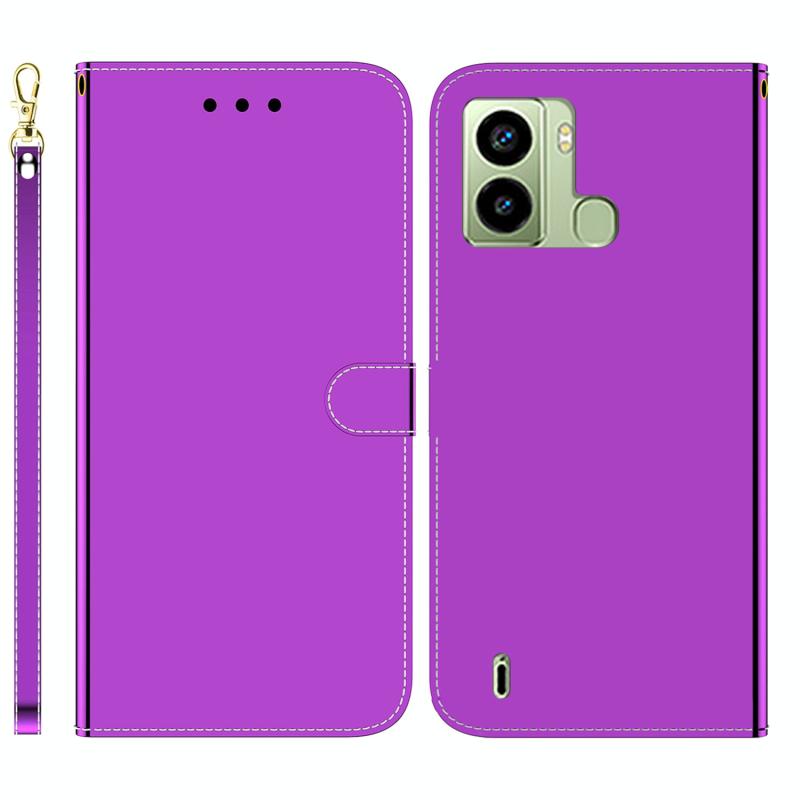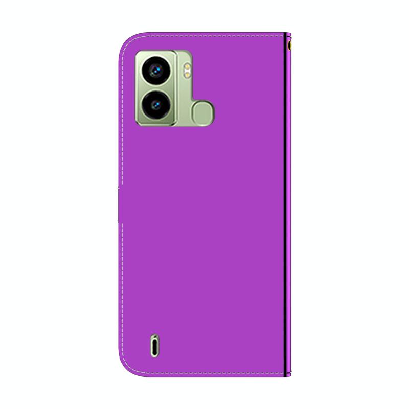 Θήκη τηλεφώνου Tecno Pop 6 με δερμάτινη επιφάνεια ανακλαστικής όψης και αισθητήρα δακτυλικού αποτυπώματος (Μωβ)