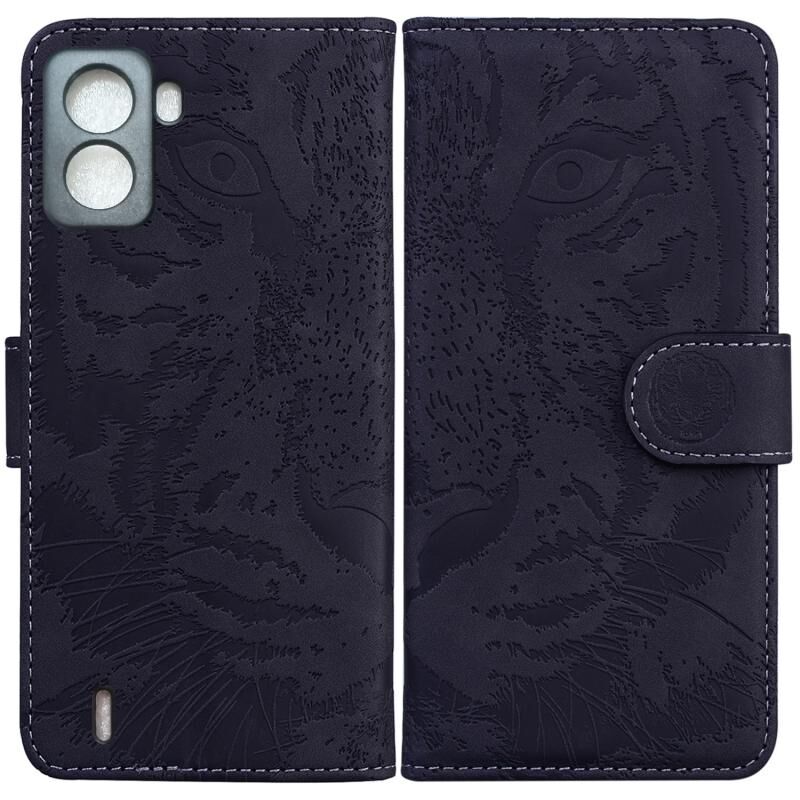 Θήκη τηλεφώνου Tecno Pop 6, δερμάτινη, οριζόντια αναδίπλωση, με ανάγλυφο μοτίβο τίγρης, χωρίς αποτυπώματα δακτύλων (Μαύρο)