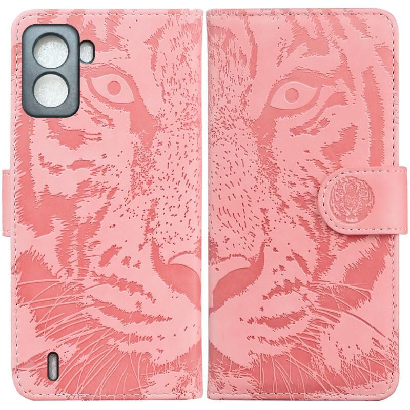 Θήκη τηλεφώνου Tecno Pop 6, δερμάτινη, οριζόντια αναδίπλωση, με ανάγλυφο μοτίβο τίγρης, χωρίς αποτυπώματα δακτύλων (Μαύρο)