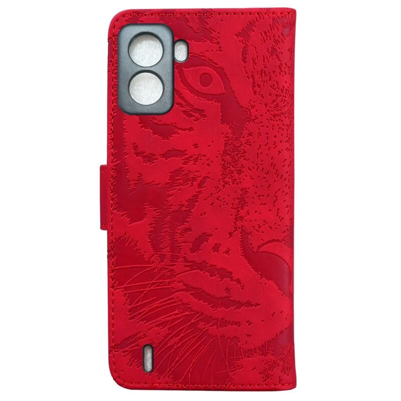 Θήκη τηλεφώνου Tecno Pop 6, δερμάτινη, οριζόντια αναδίπλωση, με ανάγλυφο μοτίβο τίγρης, χωρίς αποτυπώματα δακτύλων (Μαύρο)