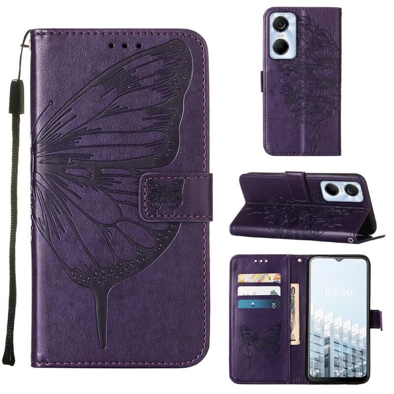 Θήκη τηλεφώνου Tecno Pop 6 Pro ανάγλυφο πεταλούδα, δερμάτινη, τύπου flip (Μπλε)