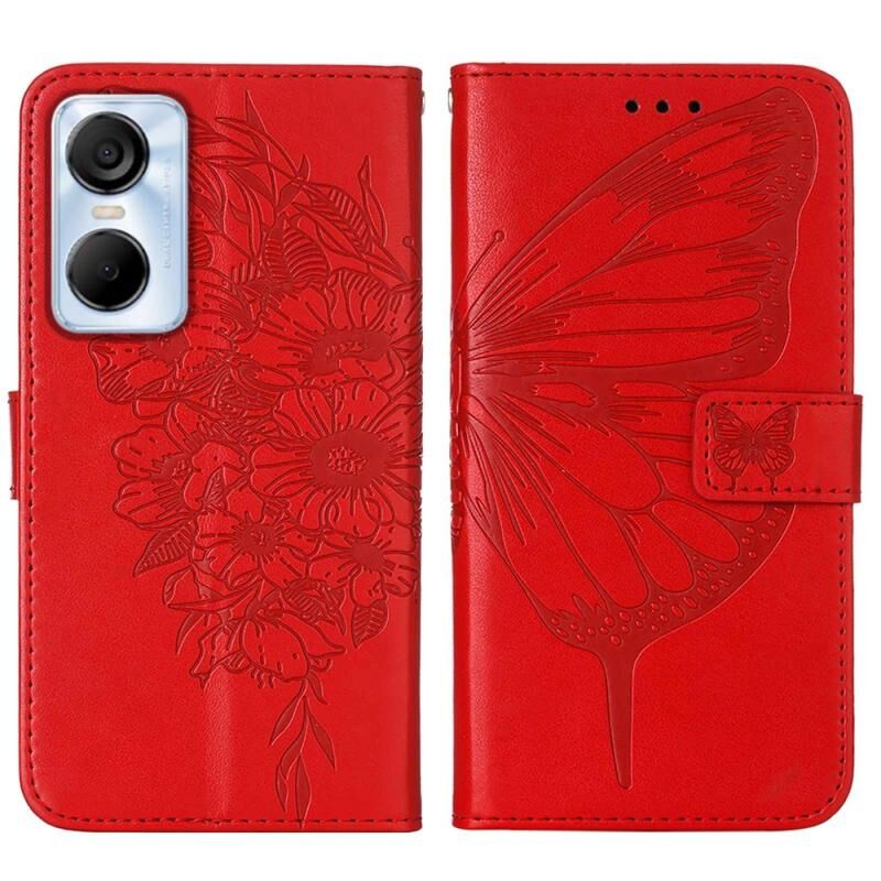 Θήκη τηλεφώνου Tecno Pop 6 Pro ανάγλυφο πεταλούδα, δερμάτινη, τύπου flip (Μπλε)