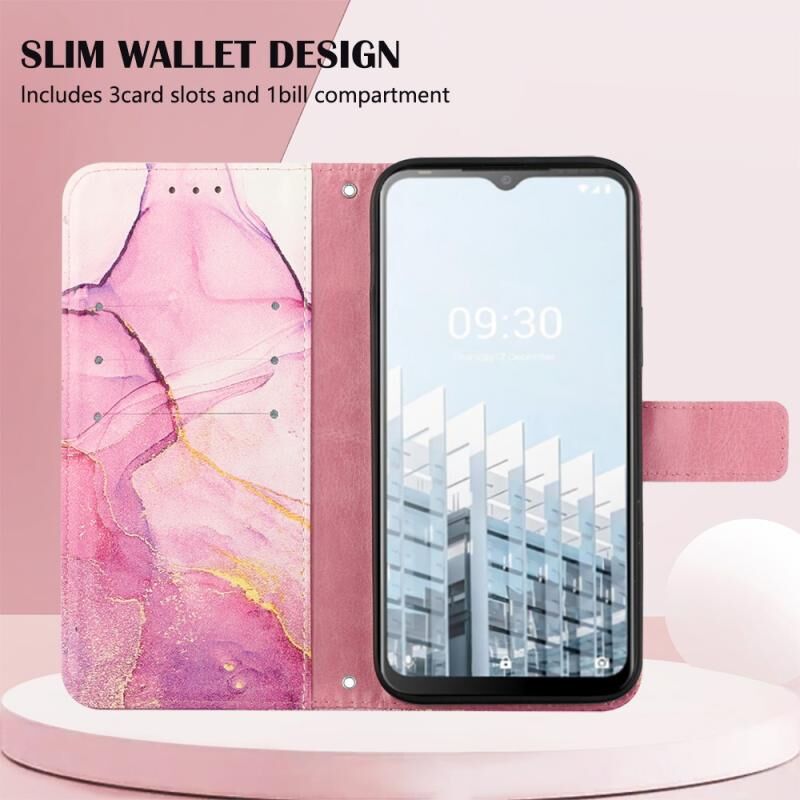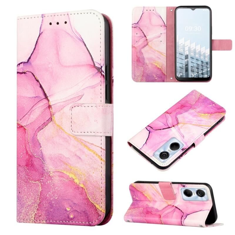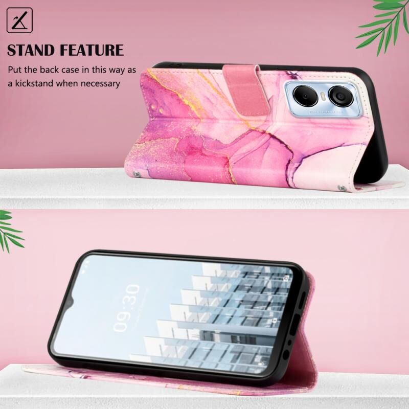 Θήκη τηλεφώνου Tecno Pop 6 Pro PT003 από δέρμα με σχέδιο μάρμαρου και πτυσσόμενο καπάκι (Ροζ, Μωβ, Χρυσό)
