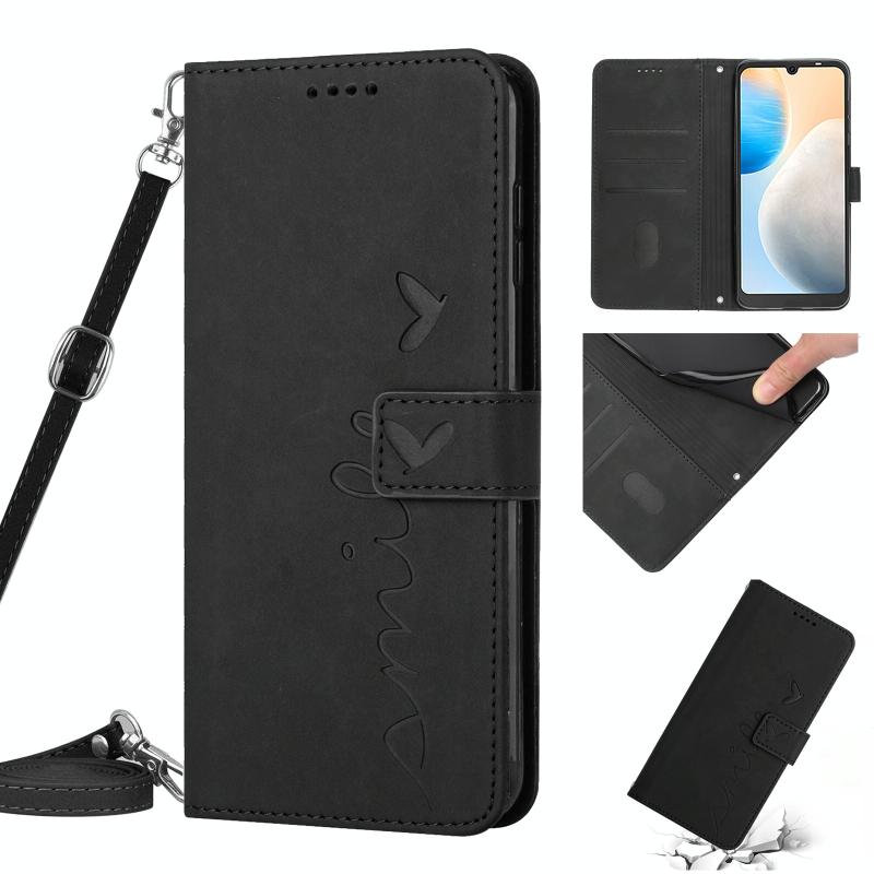 Θήκη τηλεφώνου Tecno Pop 6 Pro με σχέδιο καρδιάς και υφή δέρματος, με κορδόνι (Πράσινο)