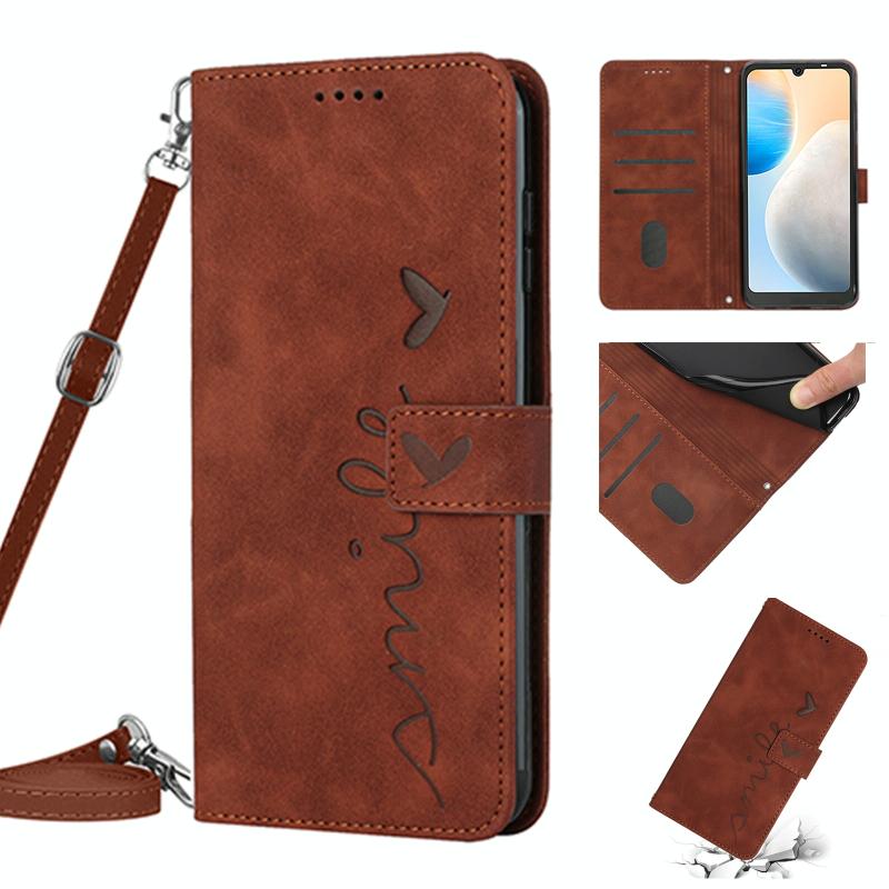 Θήκη τηλεφώνου Tecno Pop 6 Pro με σχέδιο καρδιάς και υφή δέρματος, με κορδόνι (Πράσινο)