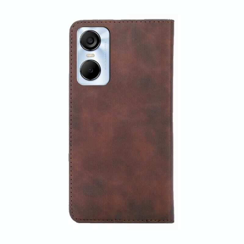 Για Tecno Pop 6 Pro Skin Feel μαγνητική οριζόντια Flip δερμάτινη θήκη τηλεφώνου (σκούρο καφέ)