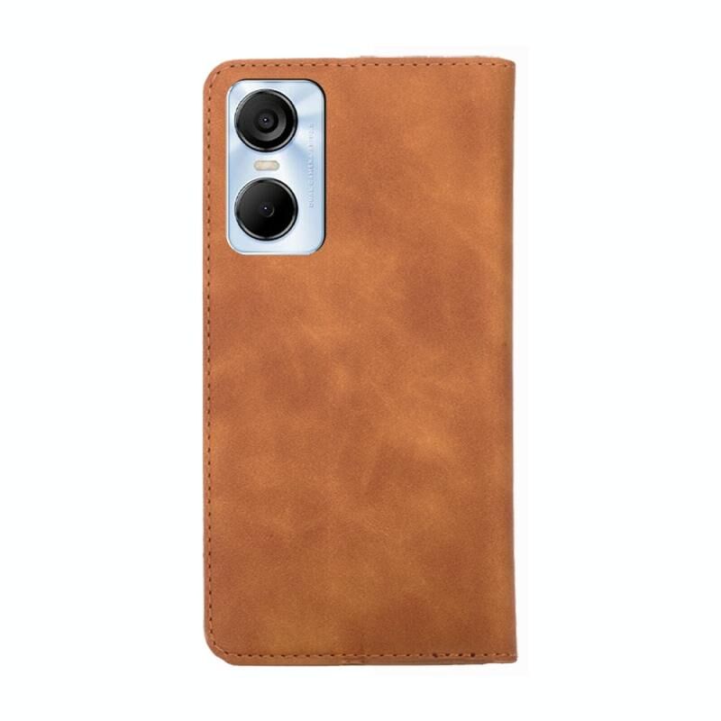 Για Tecno Pop 6 Pro Skin Feel μαγνητική οριζόντια Flip δερμάτινη θήκη τηλεφώνου (ανοιχτό καφέ)
