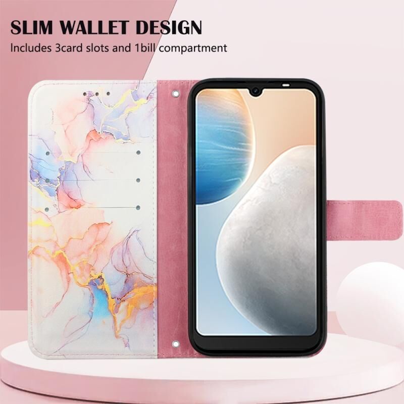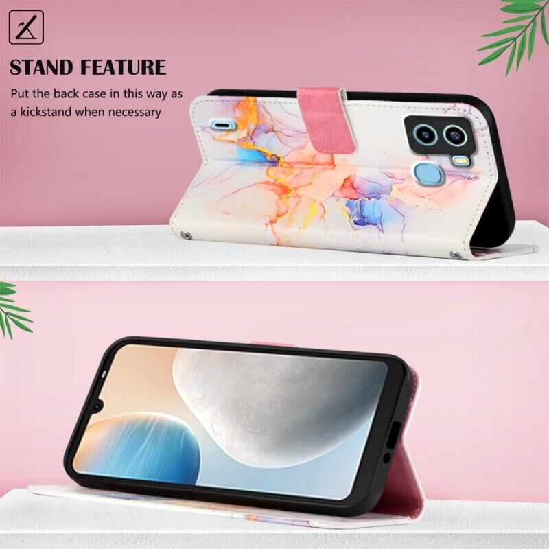 Θήκη τηλεφώνου Tecno Pop 6 PT003 από δέρμα με σχέδιο μάρμαρου και πτυσσόμενο καπάκι (Ροζ, Μωβ, Χρυσό)