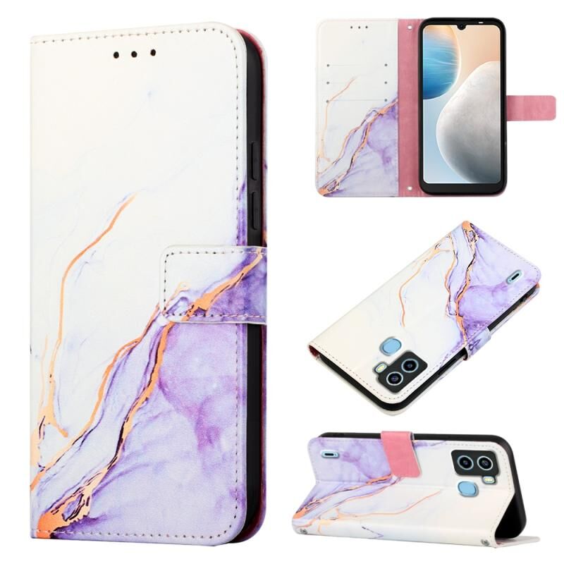 Θήκη τηλεφώνου Tecno Pop 6 PT003 από δέρμα με σχέδιο μάρμαρου και πτυσσόμενο καπάκι (Ροζ, Μωβ, Χρυσό)