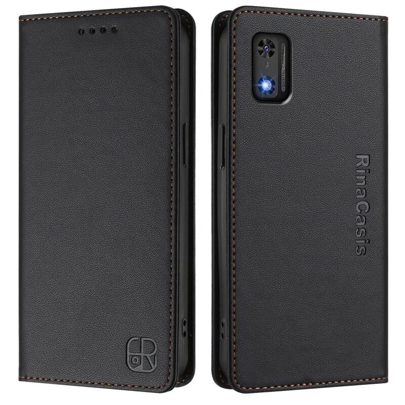 For Tecno Pop 6C / itel A18 RC01 Dual-Folded Magnetic Suction RFID Leather Phone Case(Black)