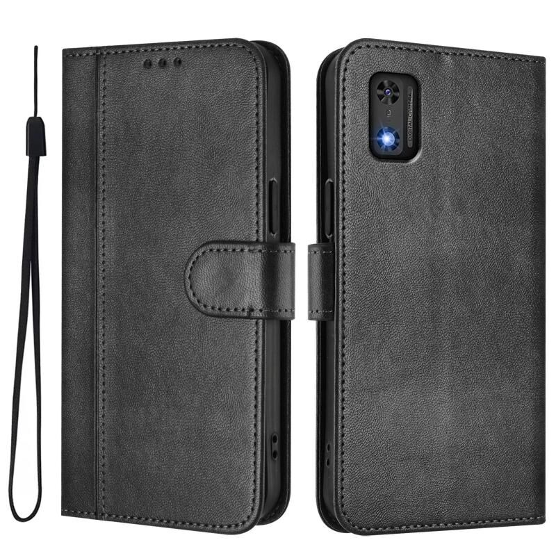 For Tecno Pop 6C Line Splicing Buckle Retro Leather Phone Case(Black)