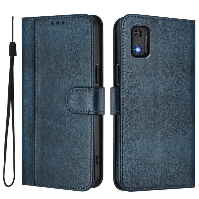 For Tecno Pop 6C Line Splicing Buckle Retro Leather Phone Case(Dark Blue)