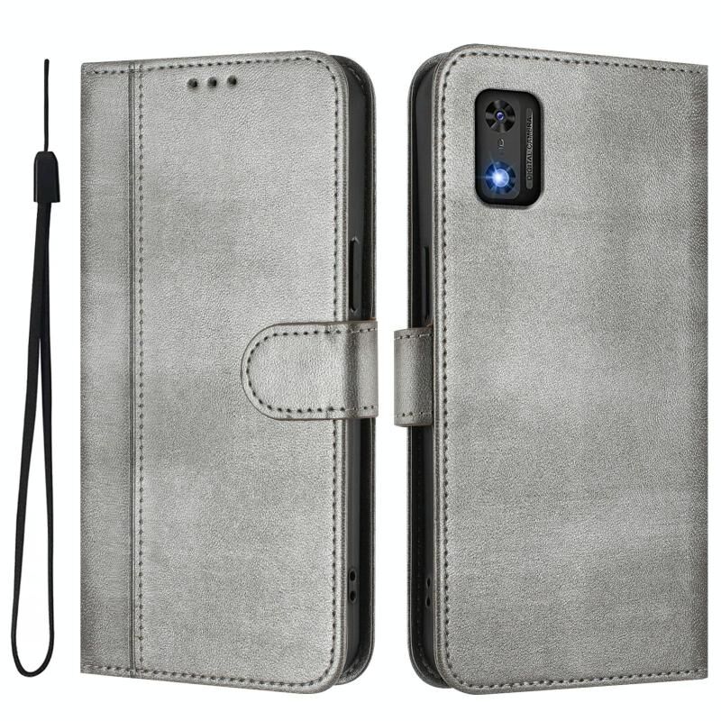 For Tecno Pop 6C Line Splicing Buckle Retro Leather Phone Case(Grey)