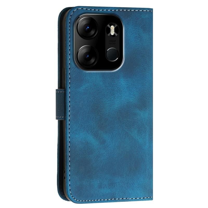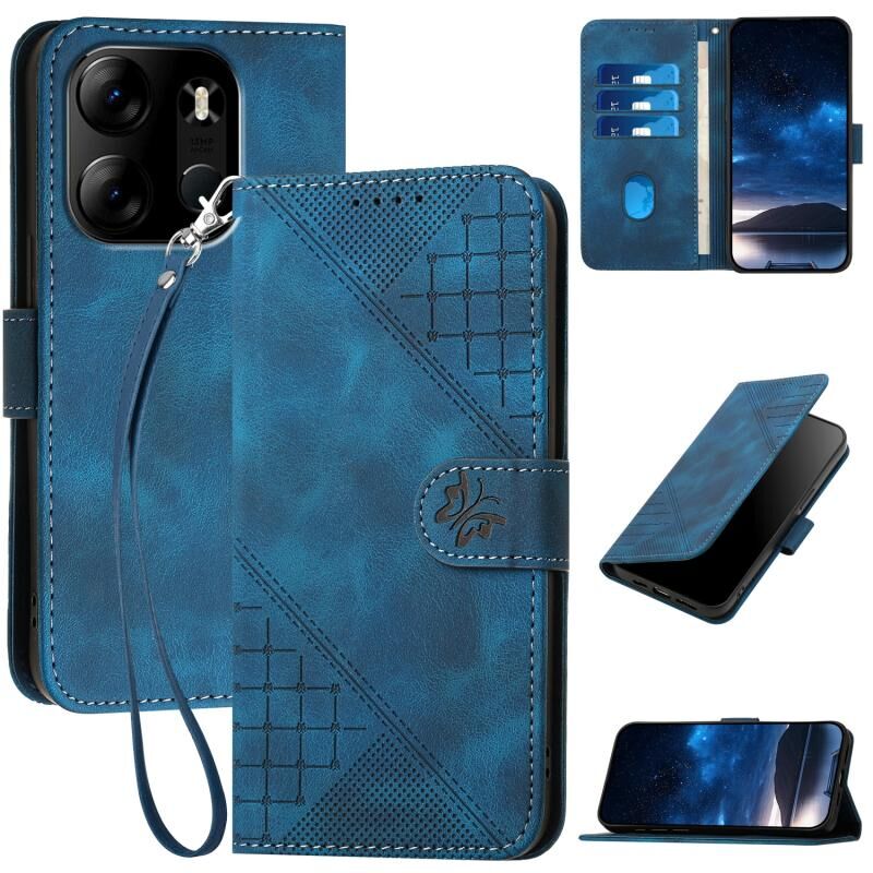 For Tecno Pop 7 / 7 Pro Grid Butterfly Embossed Pattern Leather Phone Case with Lanyard(Dark Blue)