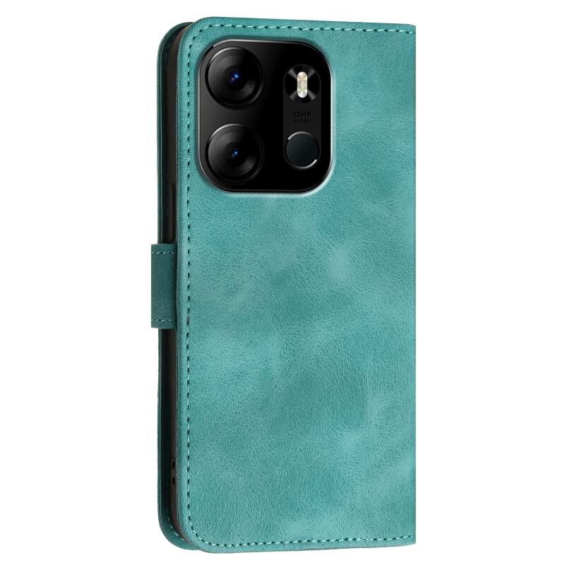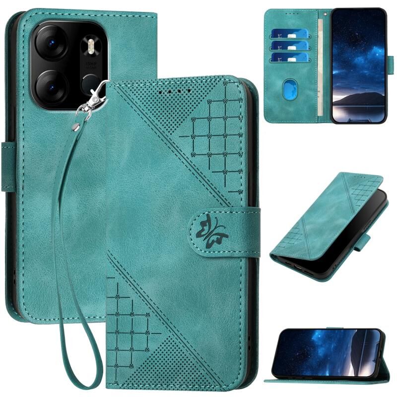For Tecno Pop 7 / 7 Pro Grid Butterfly Embossed Pattern Leather Phone Case with Lanyard(Light Blue)