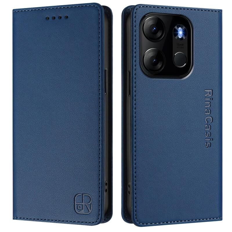 For Tecno Pop 7/ 7 Pro / Spark GO 2023 RC01 Dual-Folded Magnetic Suction RFID Leather Phone Case(Dark Blue)