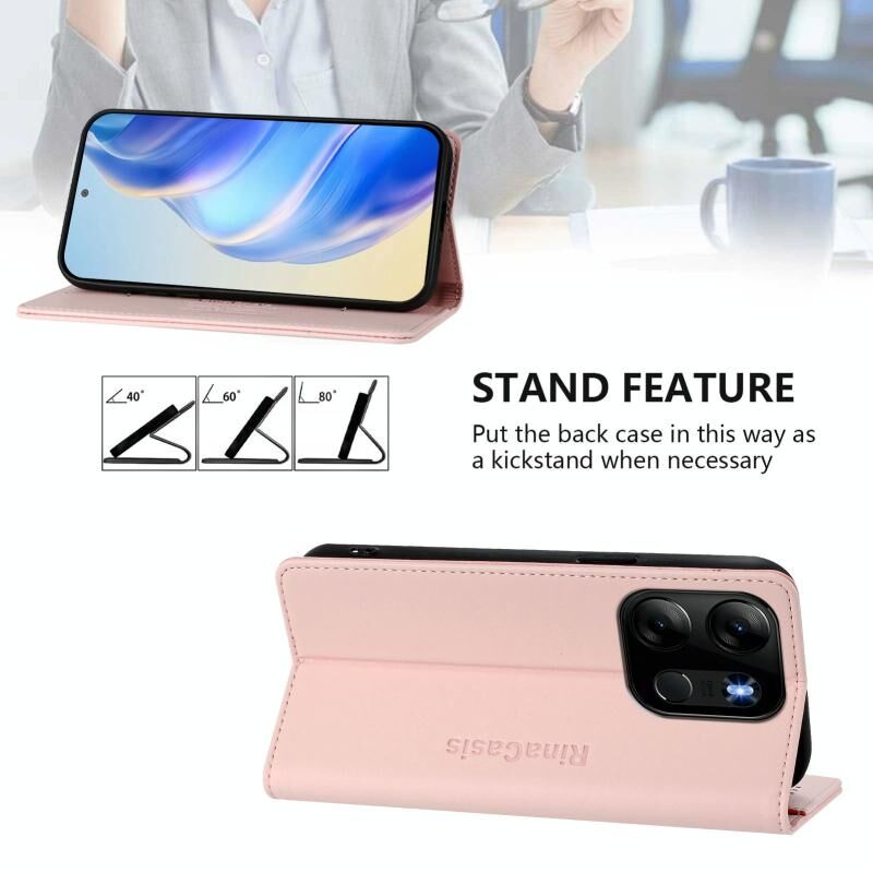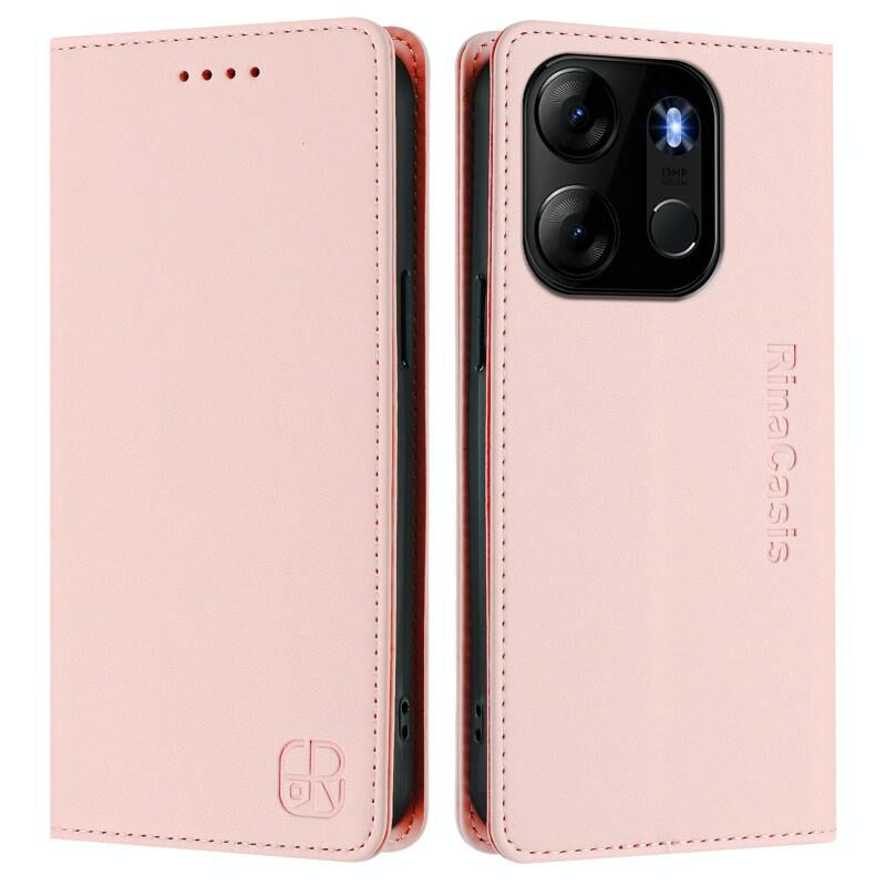For Tecno Pop 7/ 7 Pro / Spark GO 2023 RC01 Dual-Folded Magnetic Suction RFID Leather Phone Case(Pink)