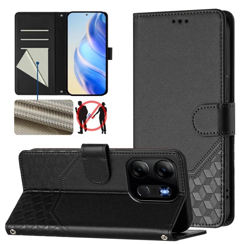 Για Tecno Pop 7 / Pop 7 Pro Honeycomb ανάγλυφη RFID δερμάτινη θήκη τηλεφώνου (Μαύρο)