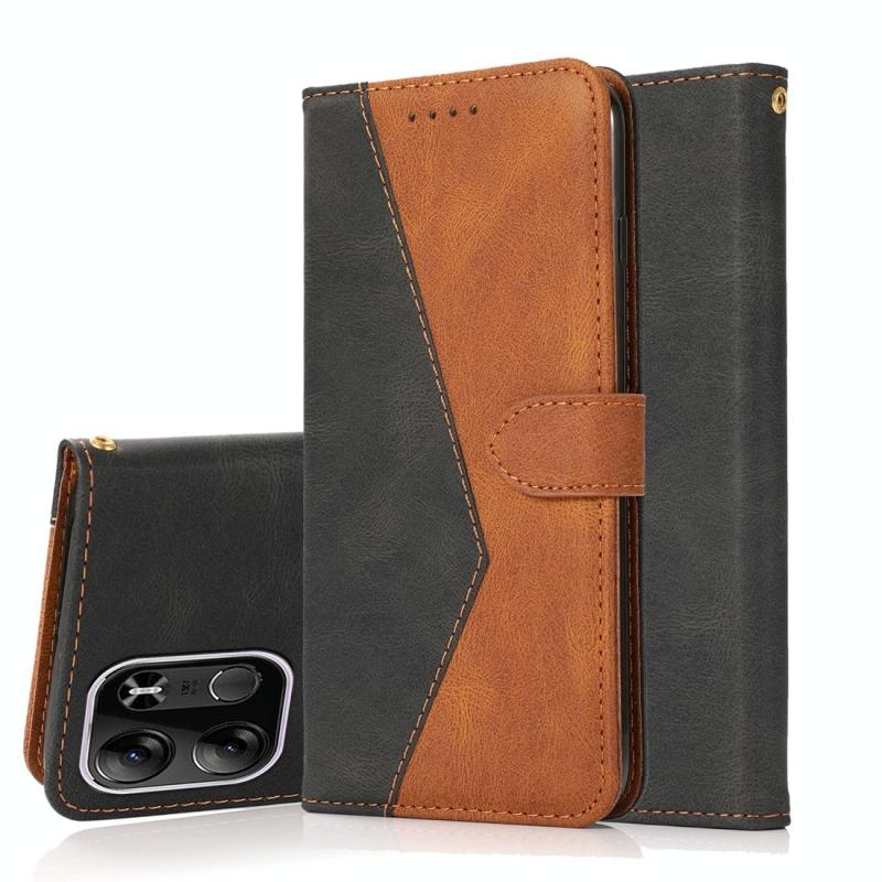 Θήκη τηλεφώνου Tecno Pop 7 Pro από δέρμα με διπλή ραφή σε δύο χρώματα (Καφέ Κόκκινο)