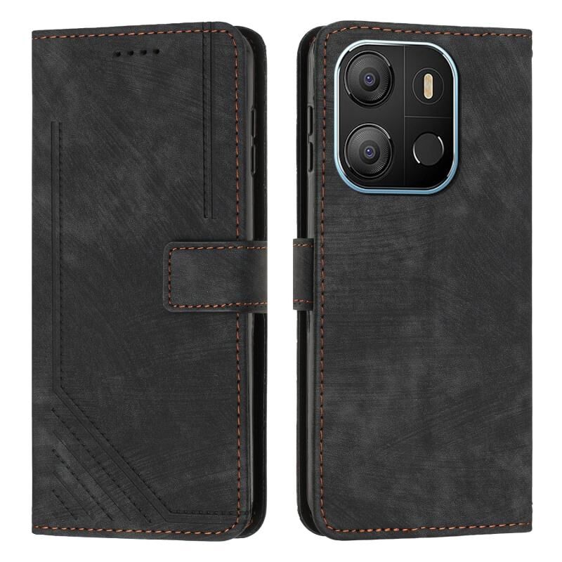 Για Tecno Pop 7 Skin Feel Stripe Pattern δερμάτινη θήκη τηλεφώνου με κορδόνι (μαύρο)
